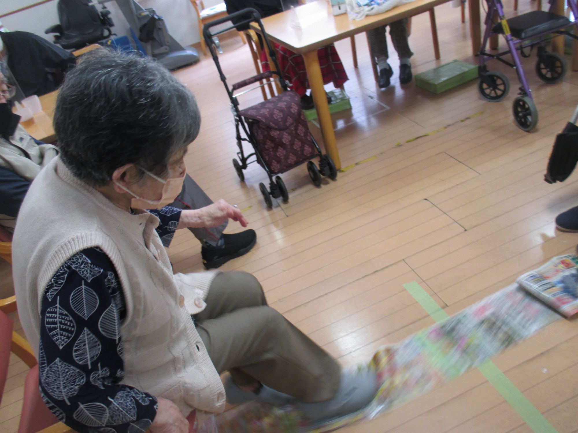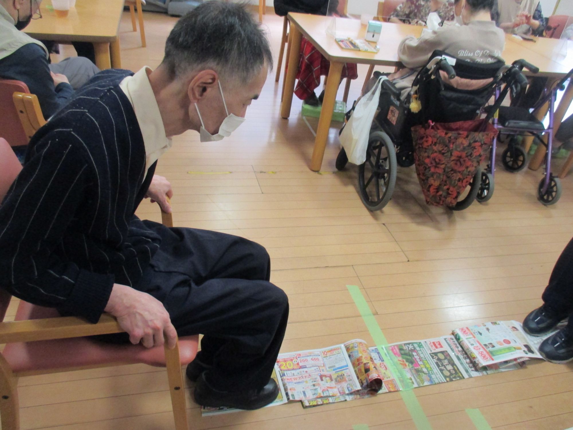 新聞紙を足で引っ張り合う綱引きを行いました。