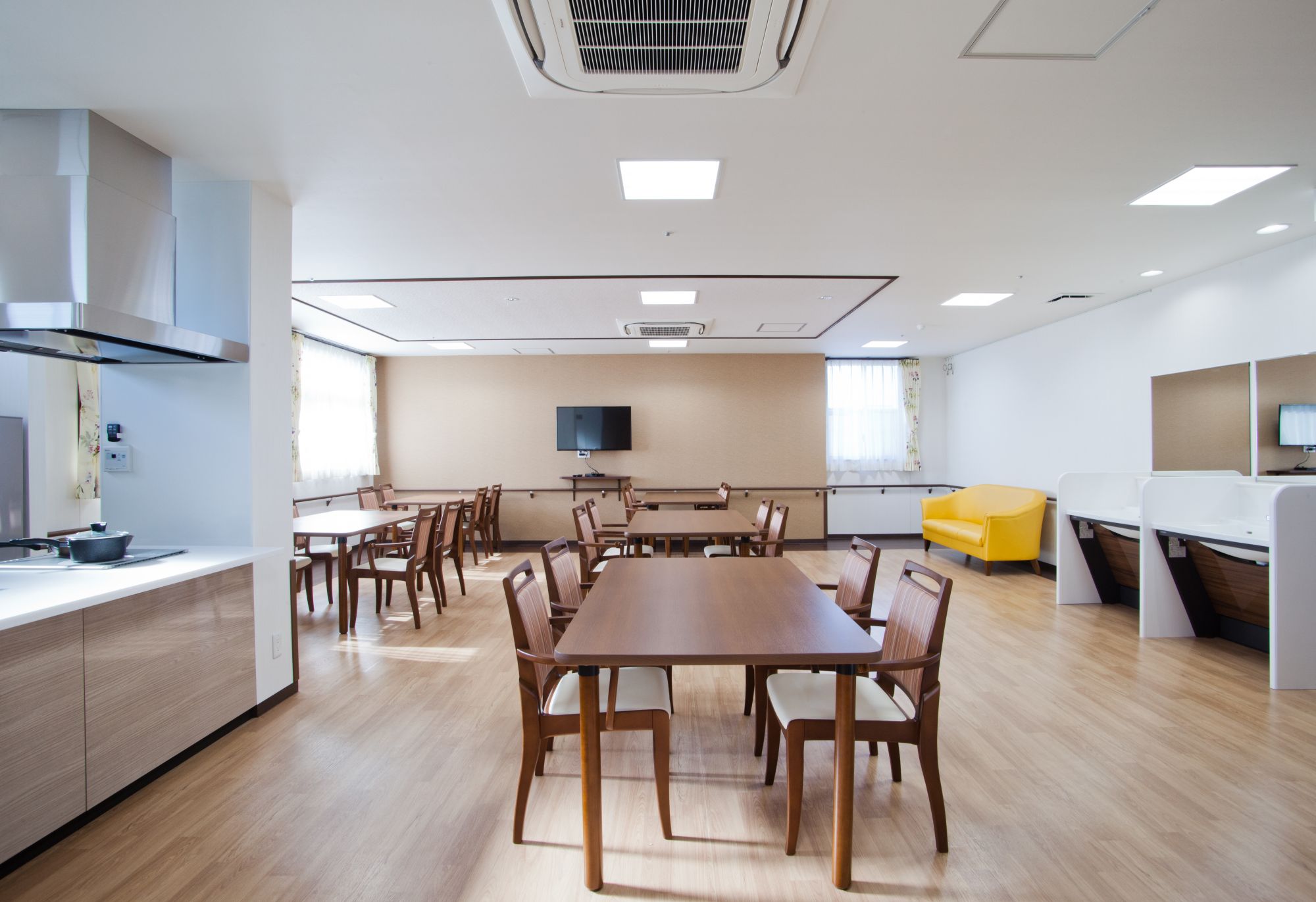 また、こちらの食堂では日々の体操やイベントなどを行う際にも使用しており、