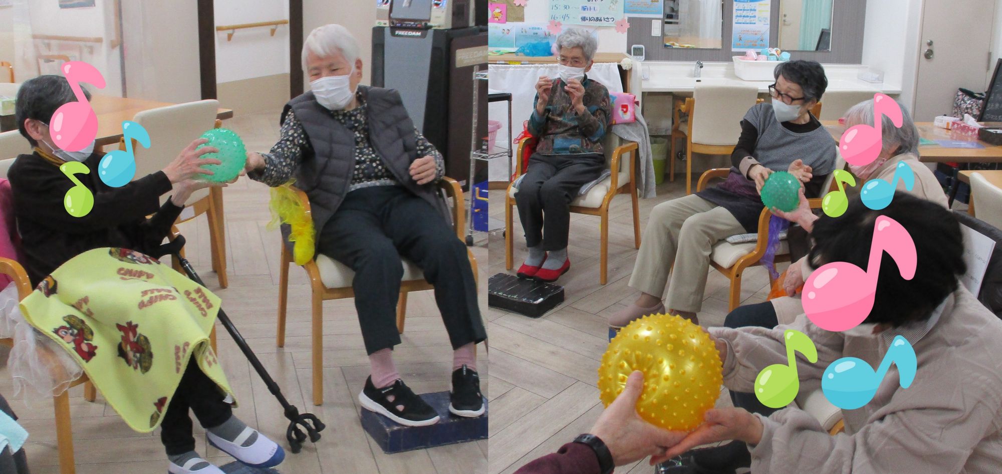 リズムに合わせて手拍子や足踏みで血行促進・脚力の維持に!!!