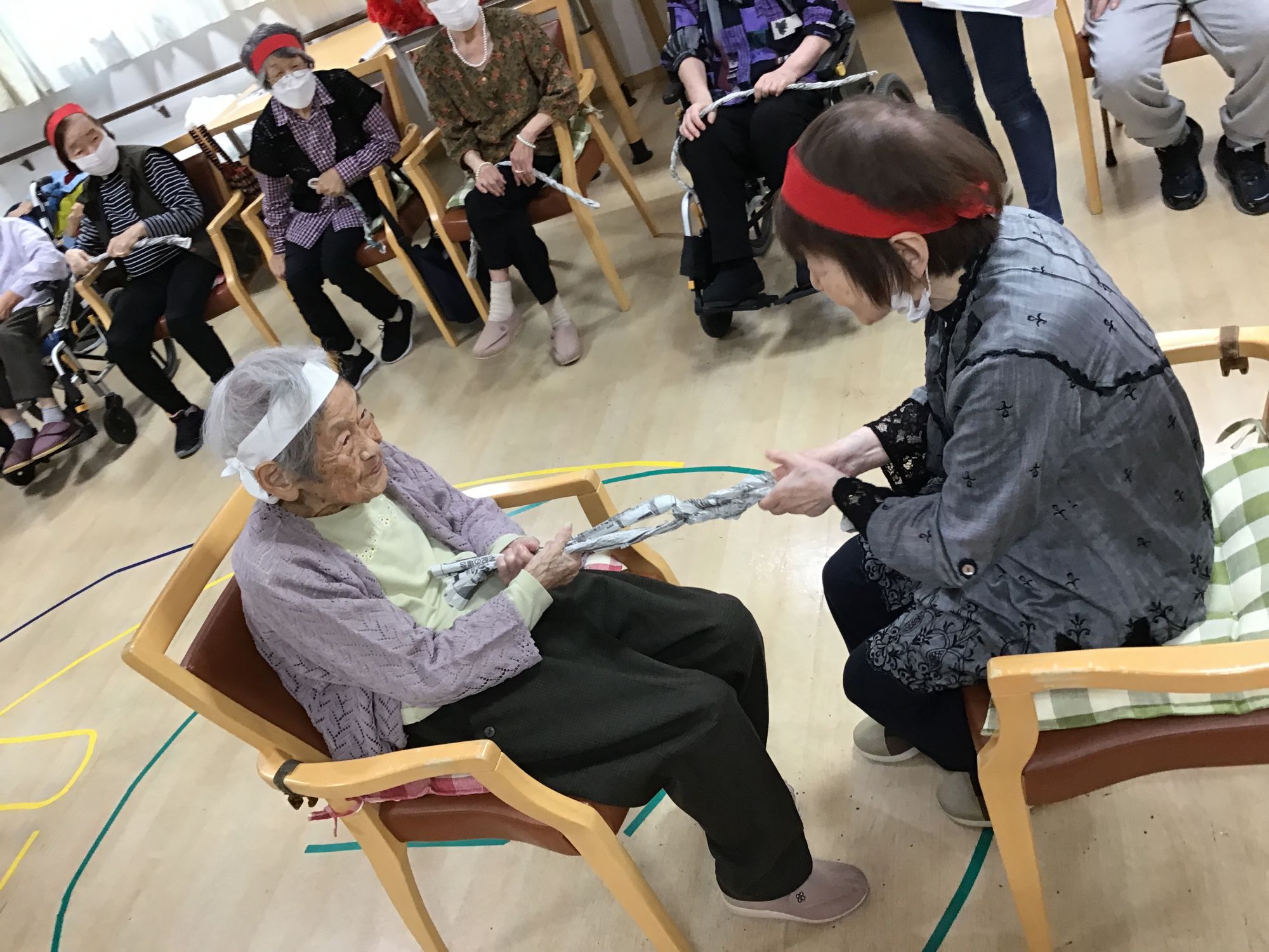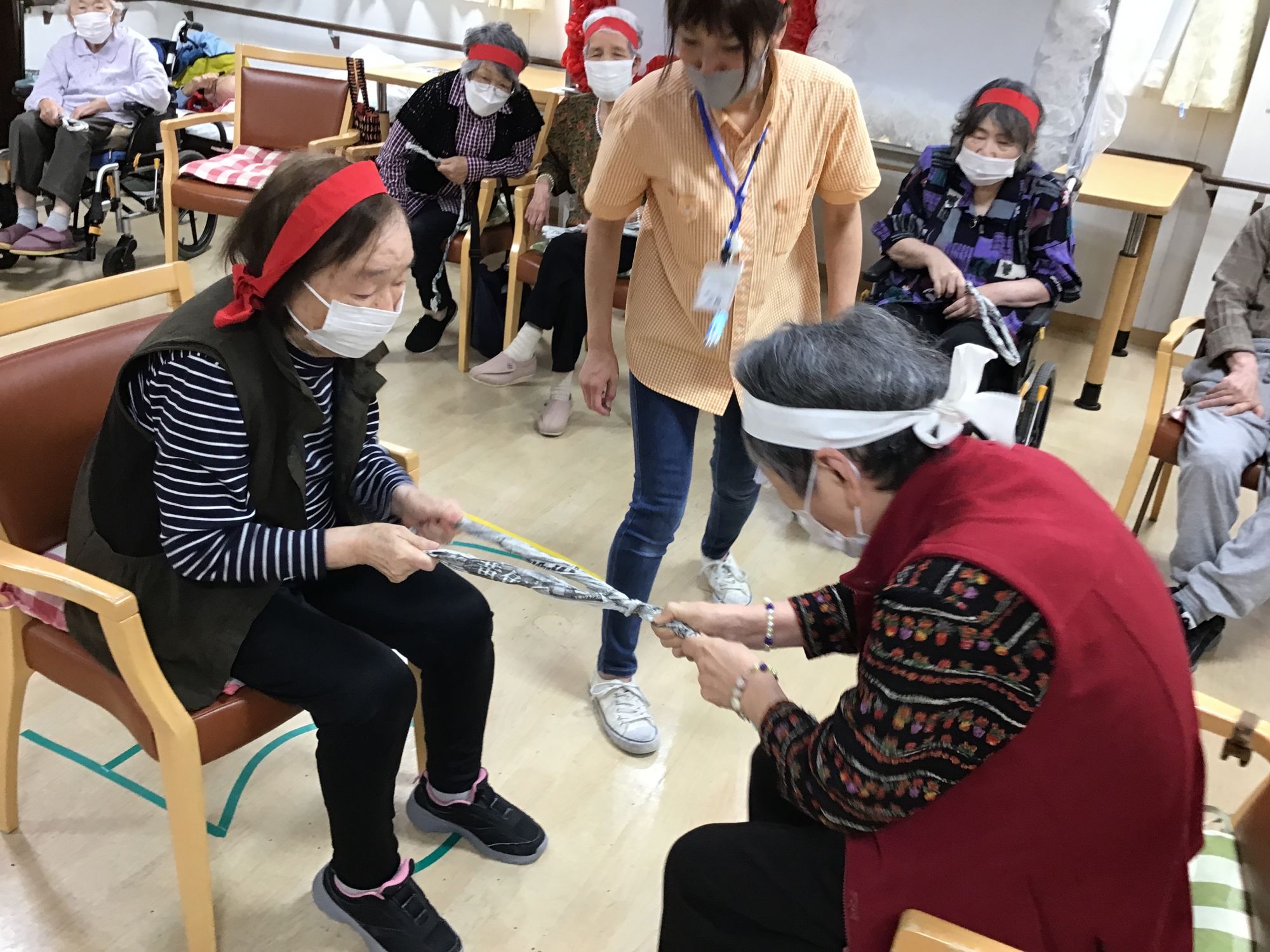 新聞を固く棒状にしていただきそれを引っ掛けて引っ張り合い、破れなかった方が勝ちです!!