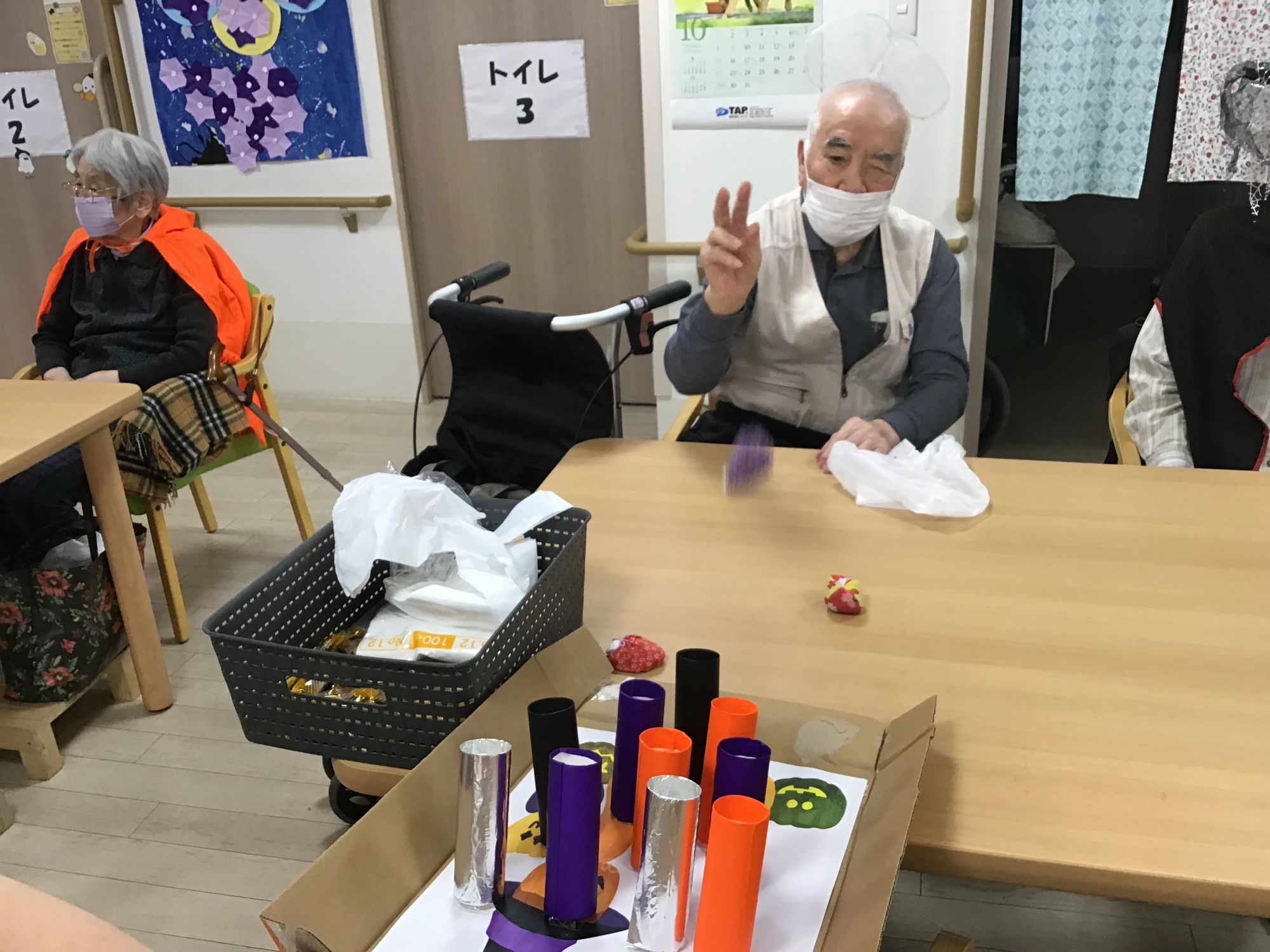 こちらは、お手玉を投げて