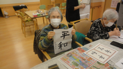 今回は、余暇時間に「書き初め」をしました。