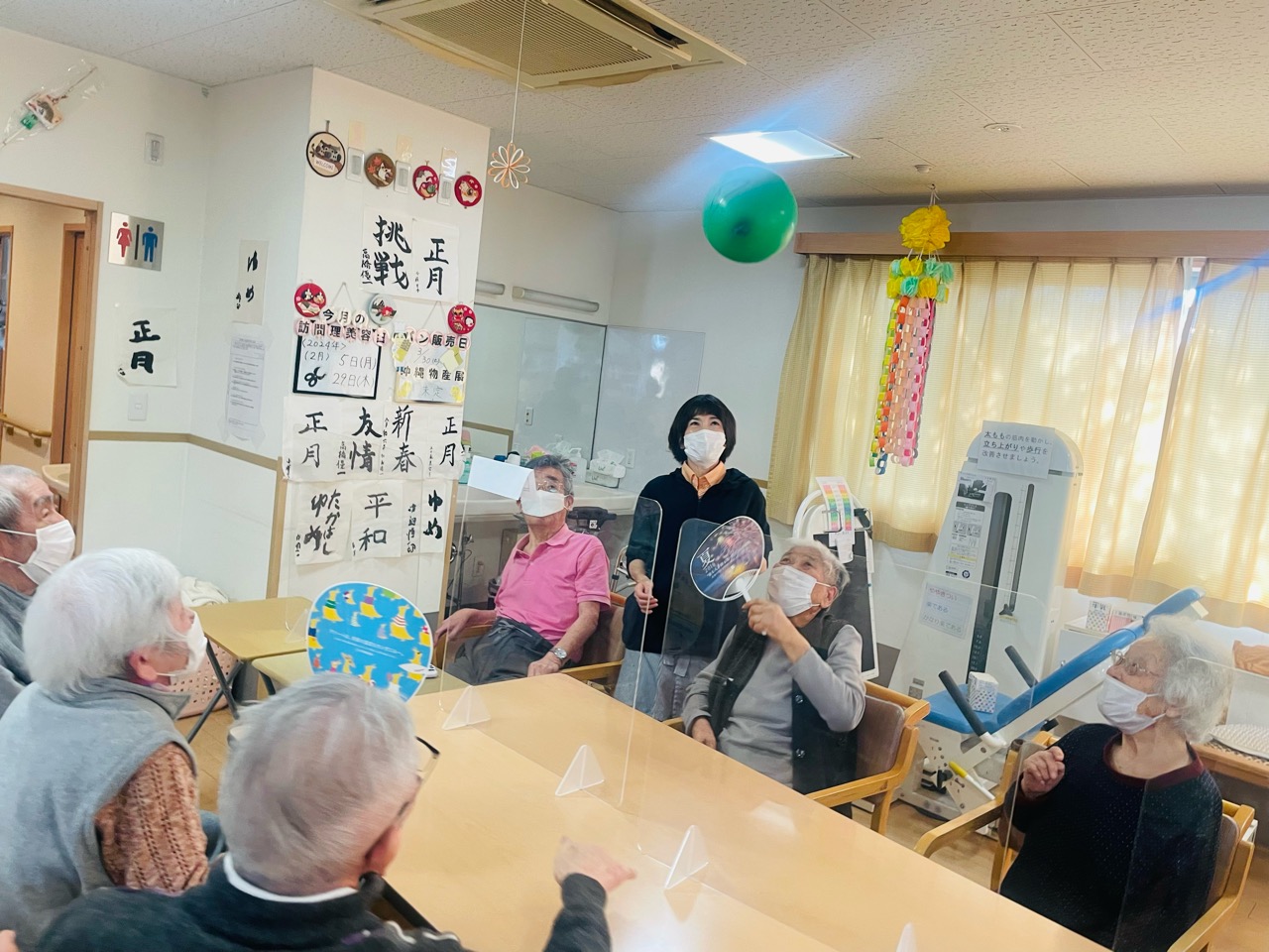 アクリル板をネットがわりに、うちわを使って打ち合います。