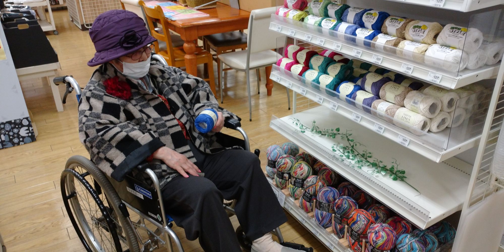 普段より編み物をされているご利用者様は毛糸をじっくり選んでいる様子がうかがえますね。