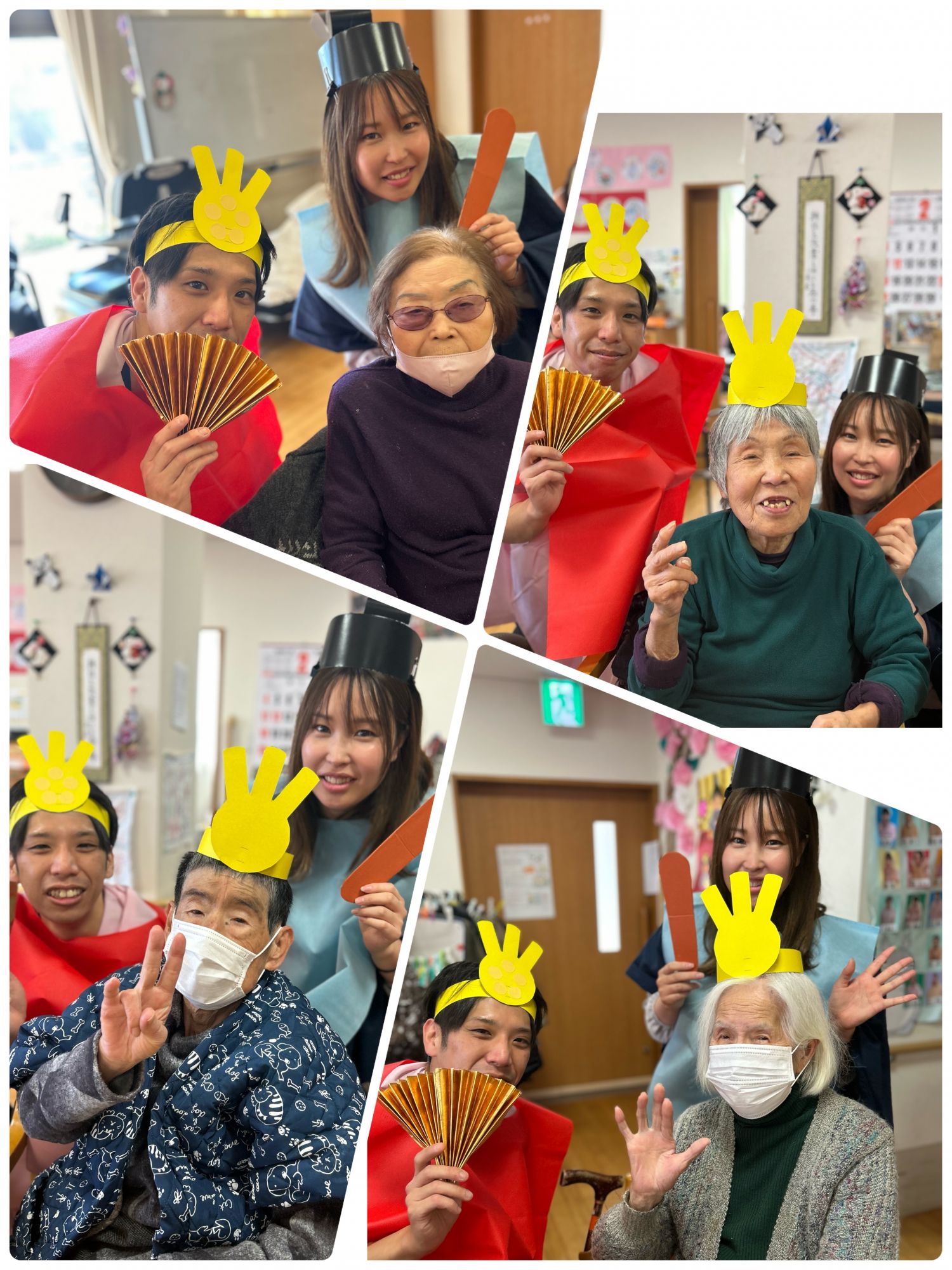 皆様良いお顔しています!ショートステイの皆様にもお披露目しました!あら可愛い( *´艸`)!と声をかけて頂き