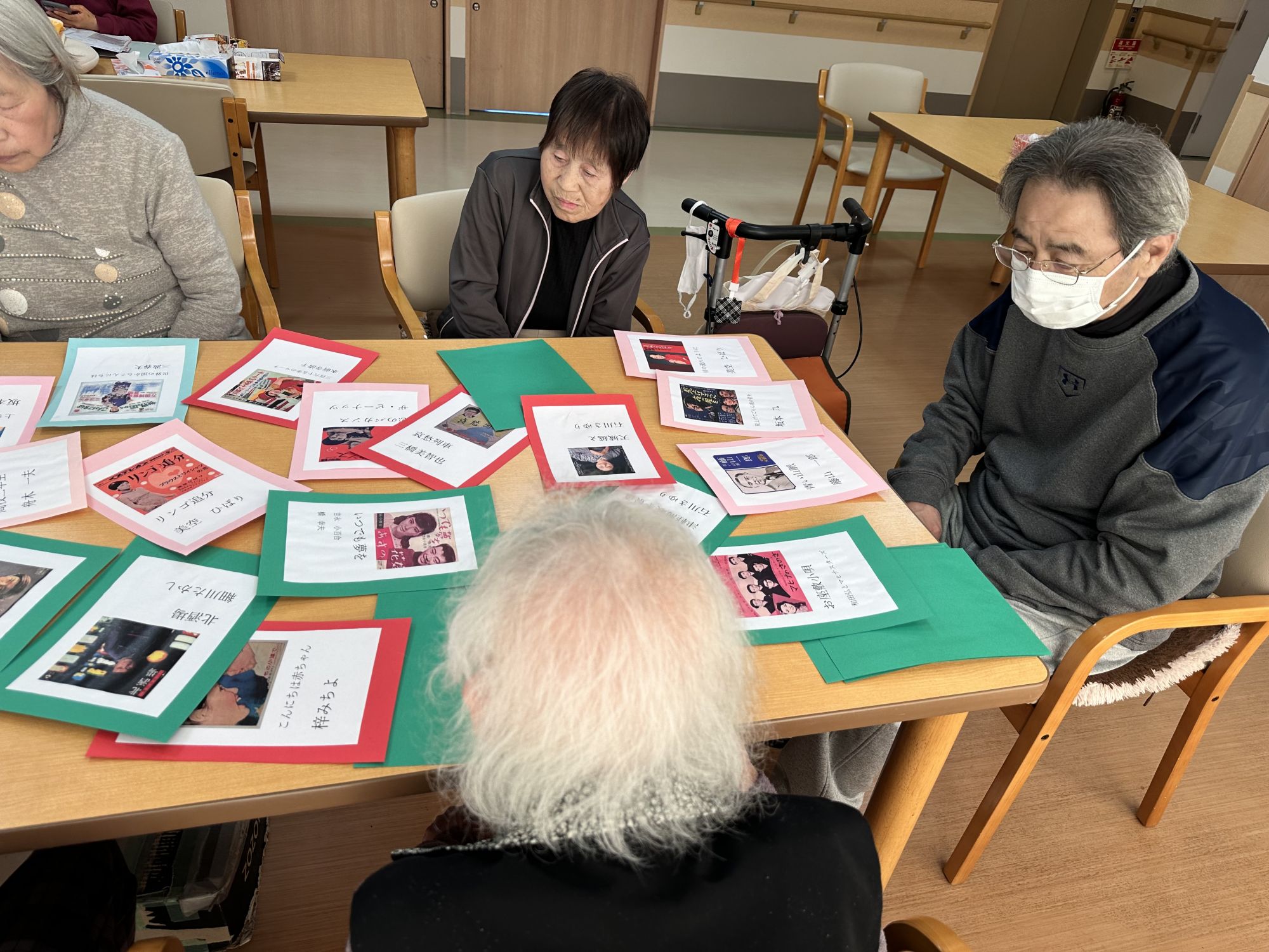 食事の前にご利用者さま同士の話題のきっかけになっていただけたらと思い作っております。