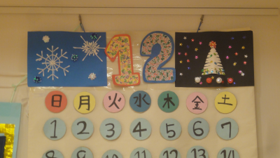 今回は、12月のカレンダーの飾り付けをしてもらいました。