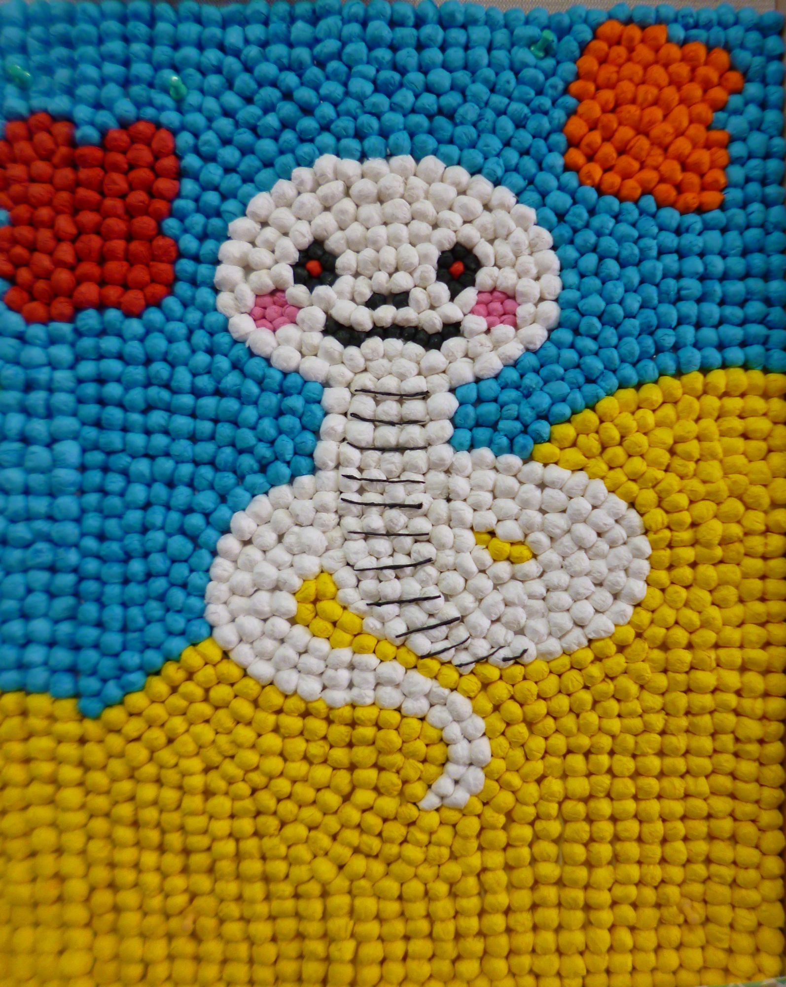 紙を小さく丸めて、ボールの形になりましたら干支の模様に合わせて貼り付ける工作です!