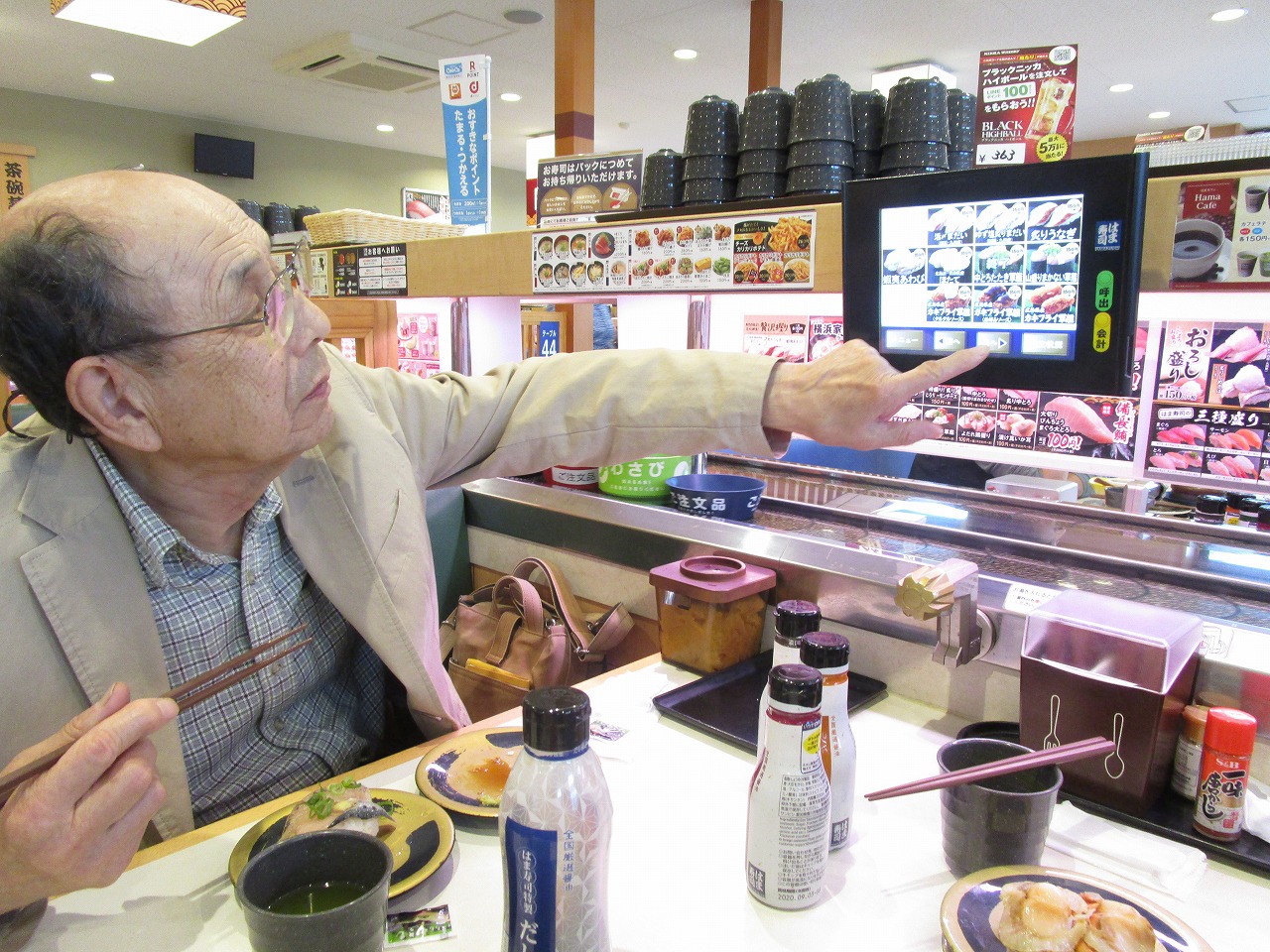 はま寿司では使い慣れないタッチパネルに苦戦・・・。