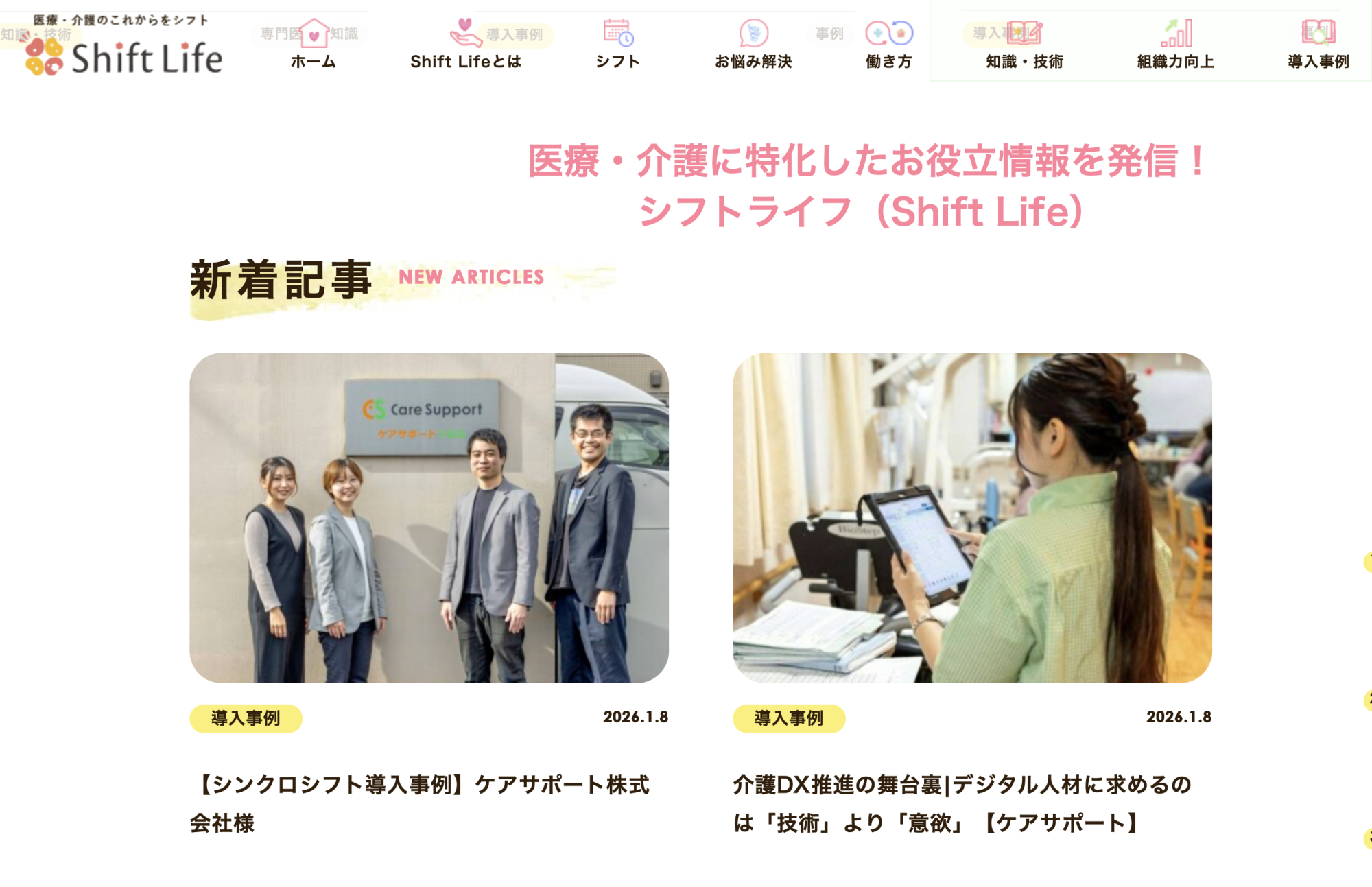 - ケアサポートの介護DXに関する取り組みと「シンクロシフト」導入事例が医療・介護メディアのシフトライフにて公開されました