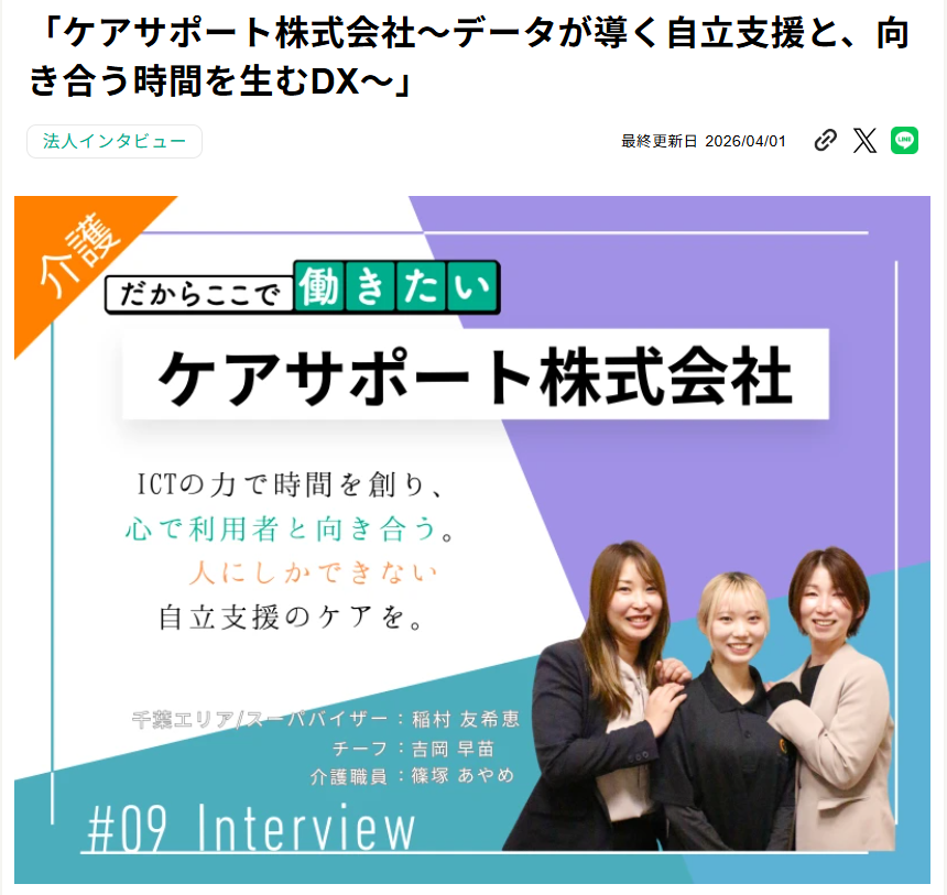 また、その中で、当社が取り組むReLIFE(自立支援介護)やデジタル活用についても、現場の声として紹介されています。